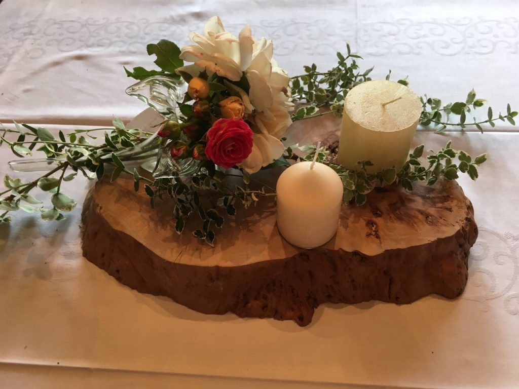 Buchenscheibe als Teil einer Tischdekoration.