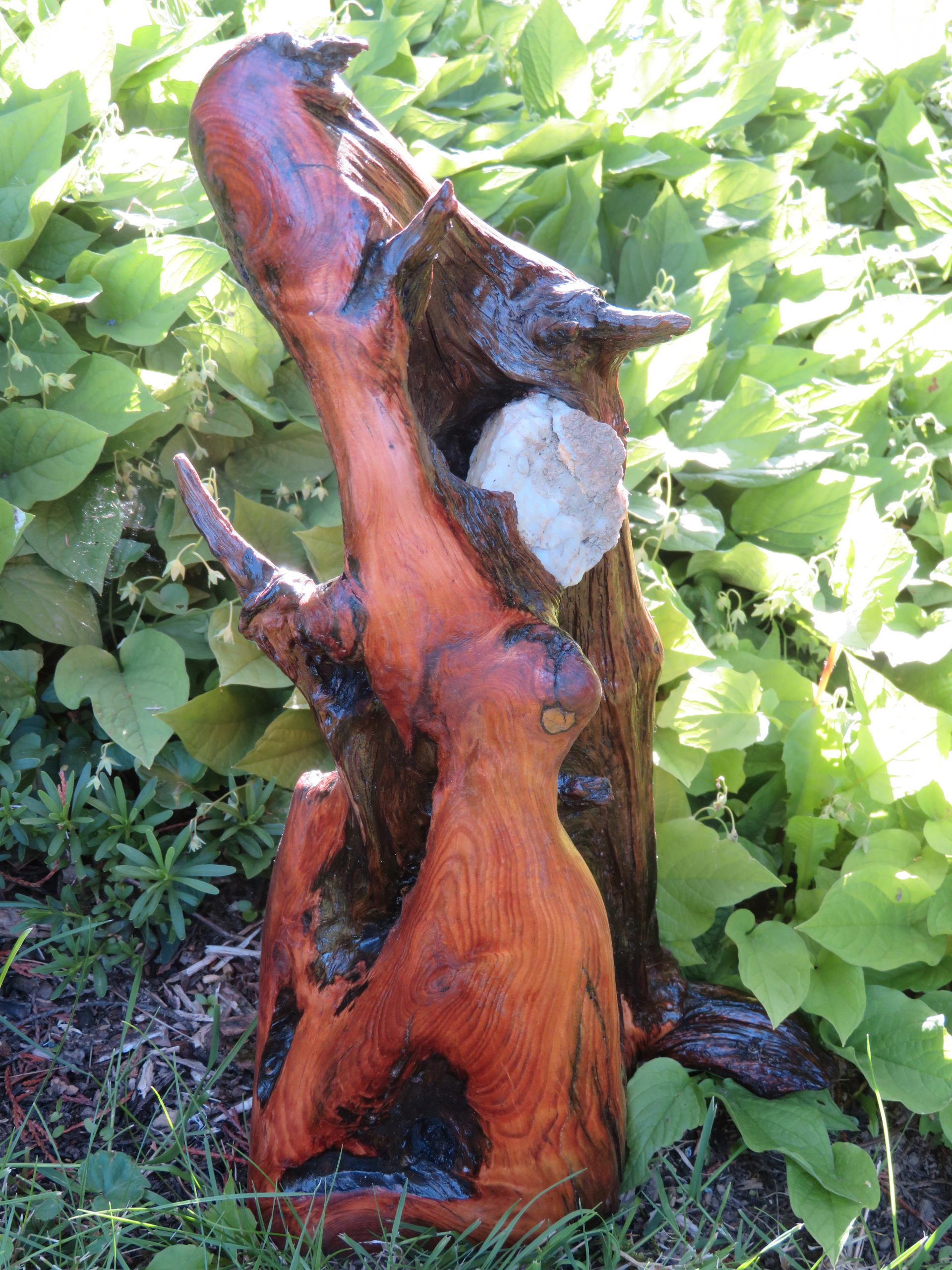 🟢Nr. 17: Fichtenwurzel mit eingewachsenem Quarz. Höhe 38 cm.