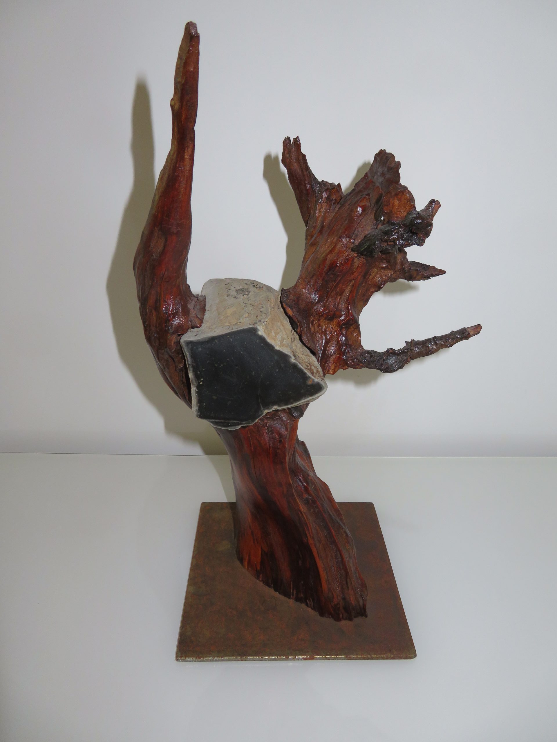 Nr. 18: Kirschbaumwurzel mit eingewachsenem Basalt. Höhe 40 cm.