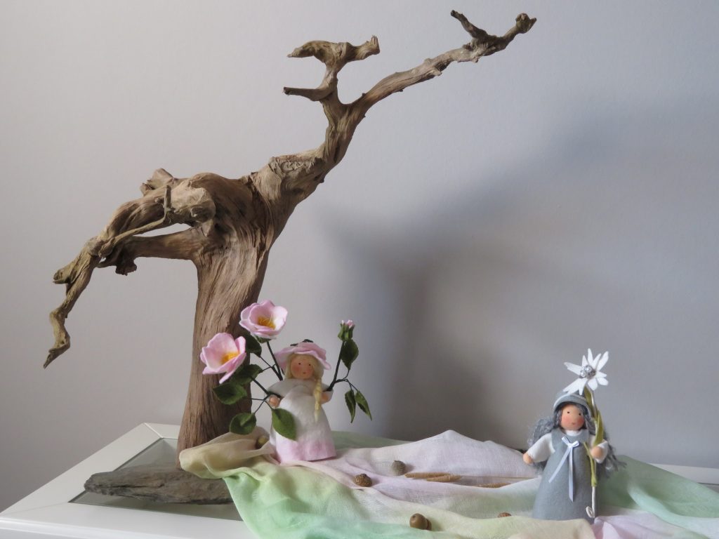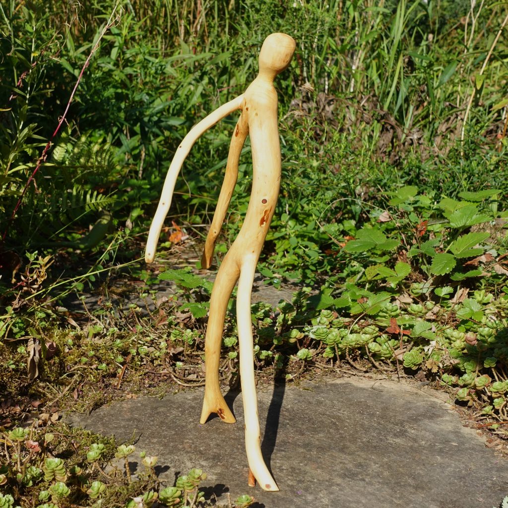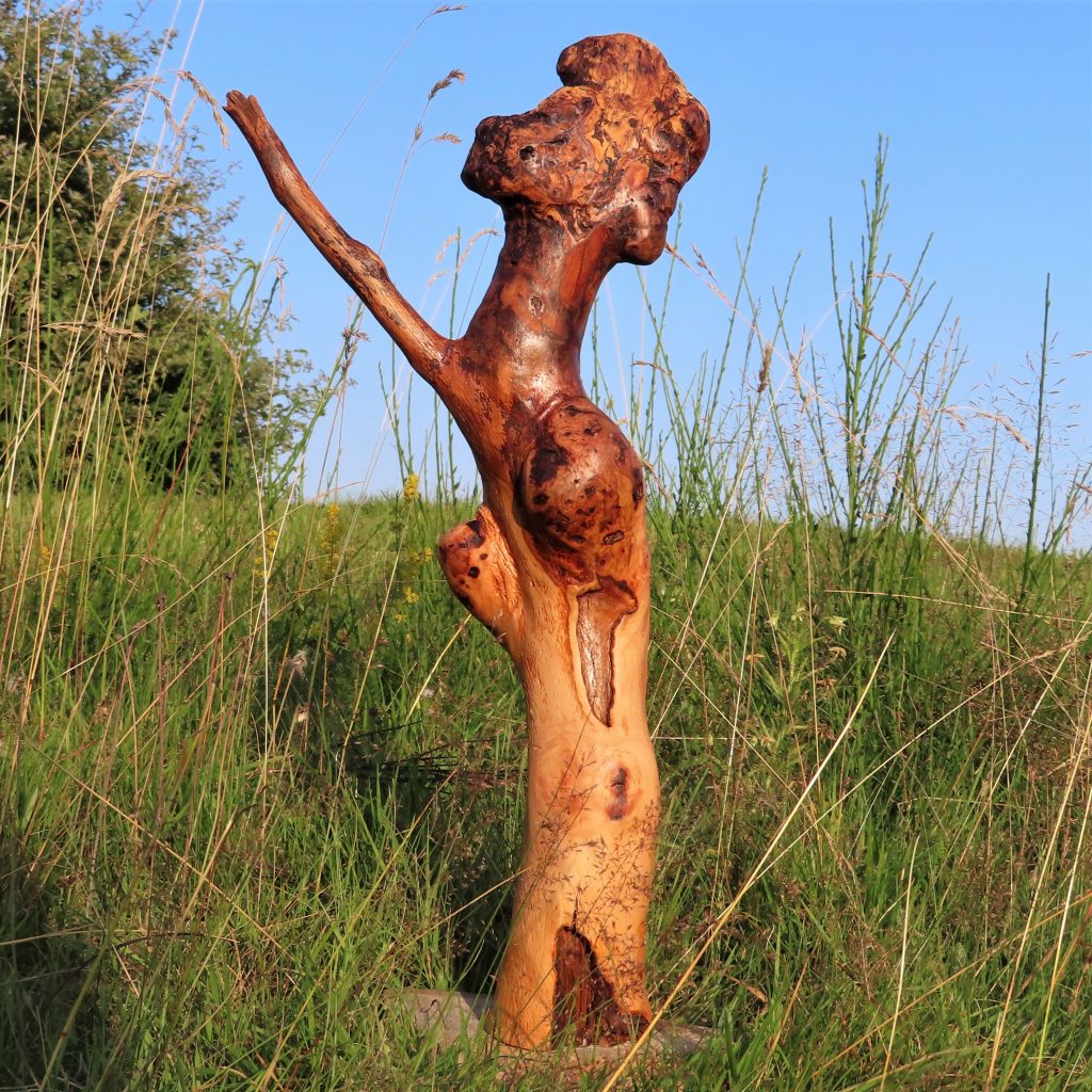 Eine kleine Spielerei mit einem Kiefernzweig: Naturskulptur „Aglaia“ (benannt nach einer der drei Grazien aus der griechischen Mythologie), Höhe 41 cm.