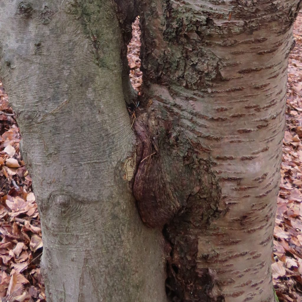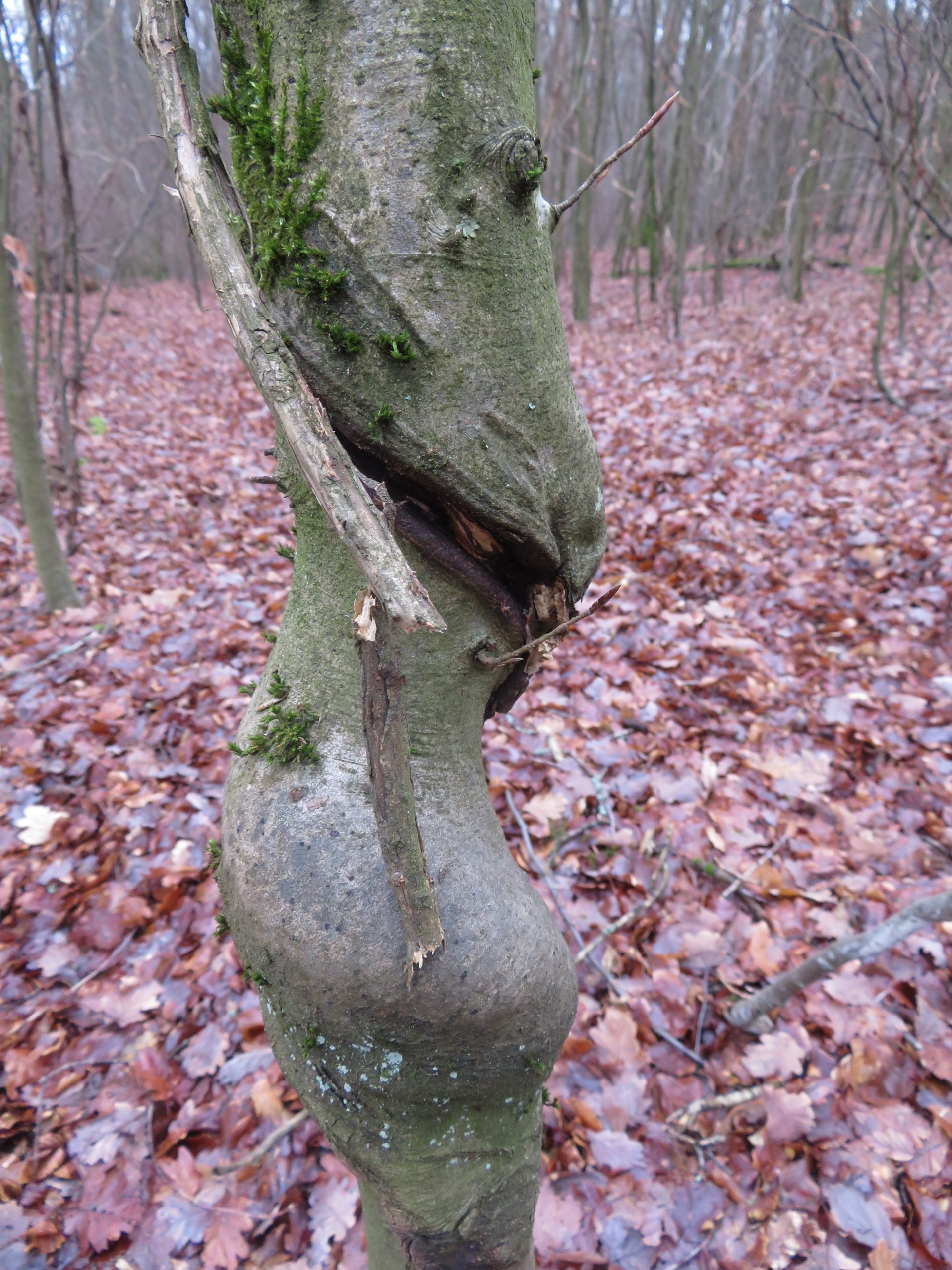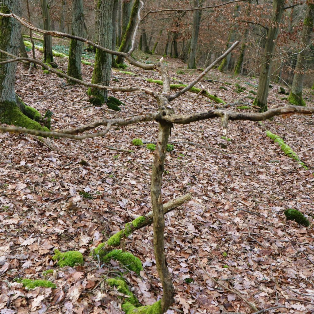 Die eigentümliche Wuchsform wurde vermutlich durch eine Schlingpflanze, z.B. Wald-Geißblatt, verursacht, …