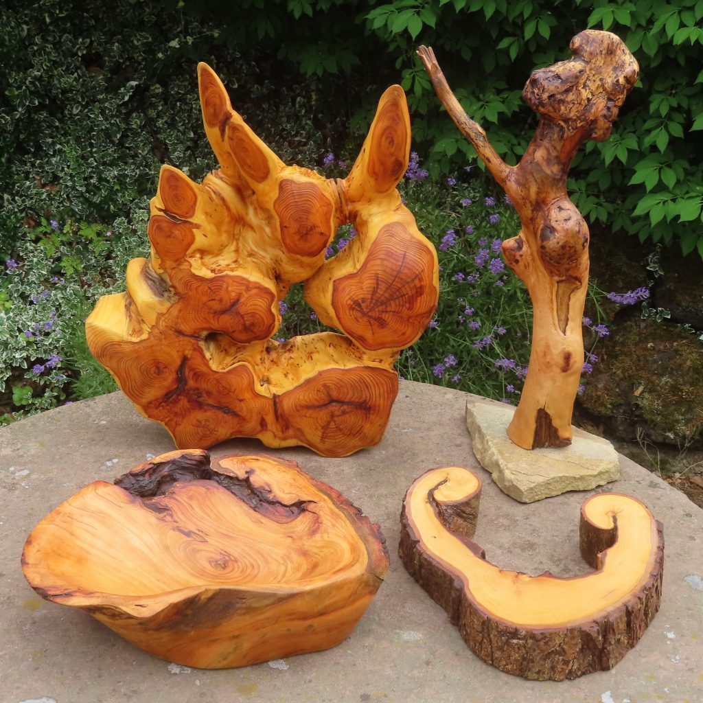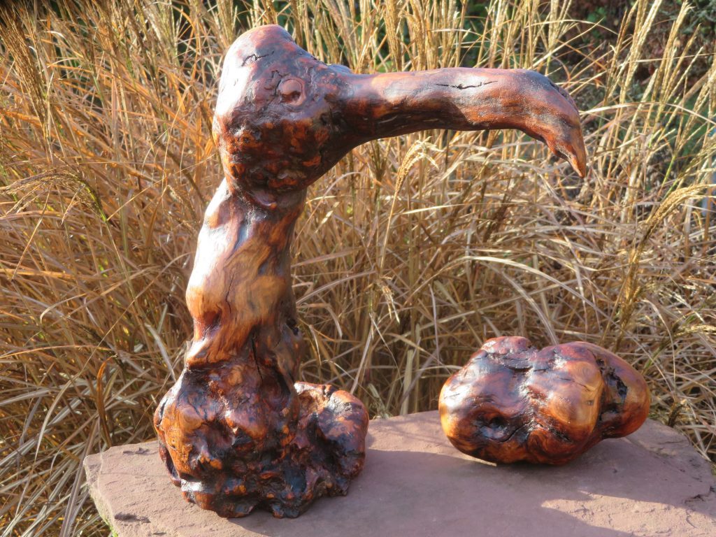 Diese Skulptur (Eiche mit Efeu) war für mich einige Nummern zu groß. Die Objekte 13 und 14 stammen von einem abgestorbenen, umgefallenen Bäumchen.