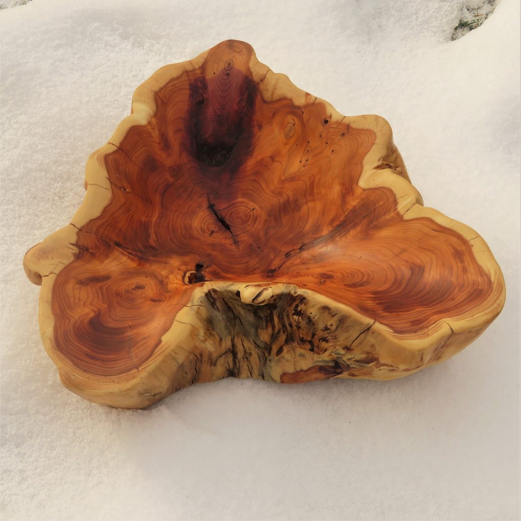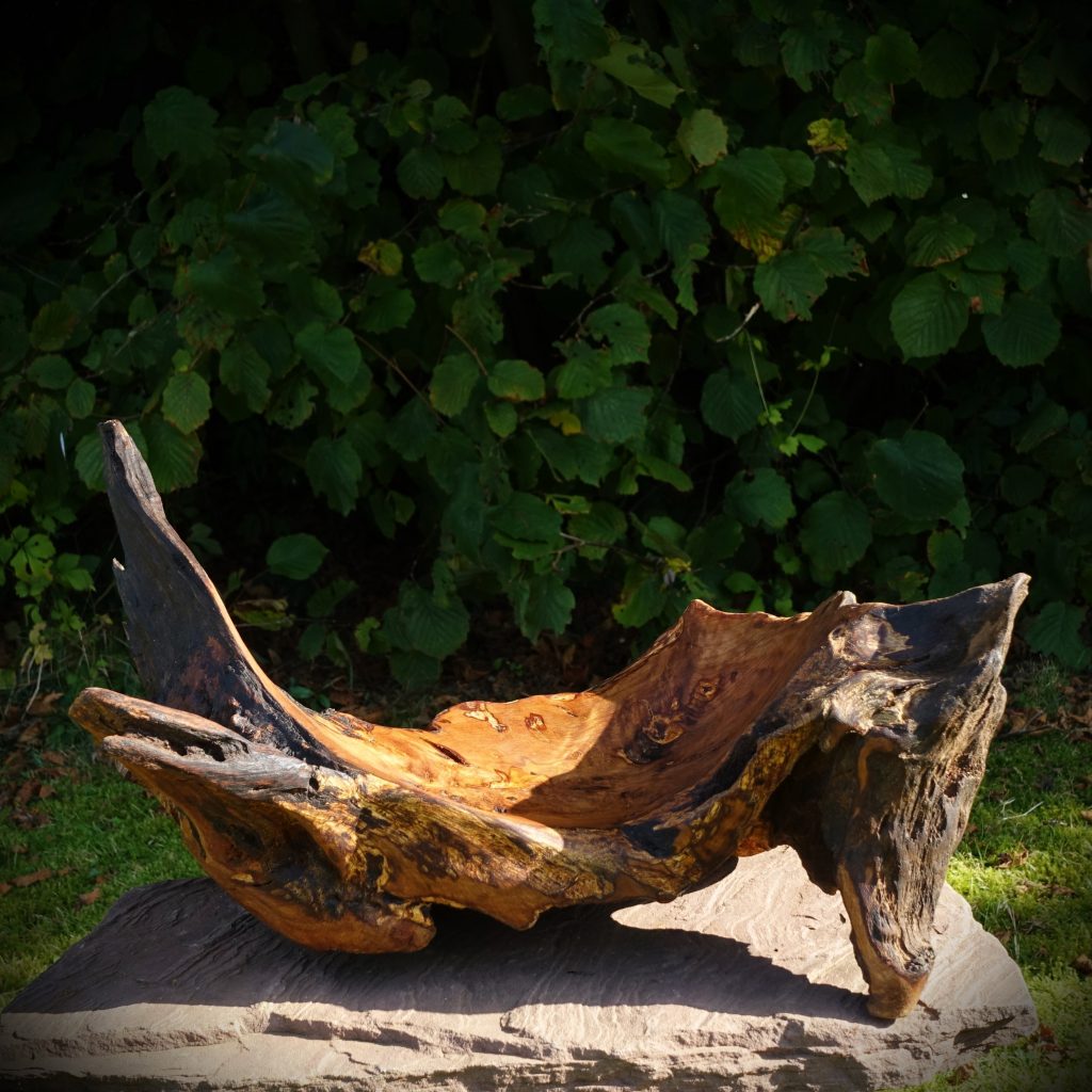 Wandschale aus dem Wurzelstubben einer Eiche,