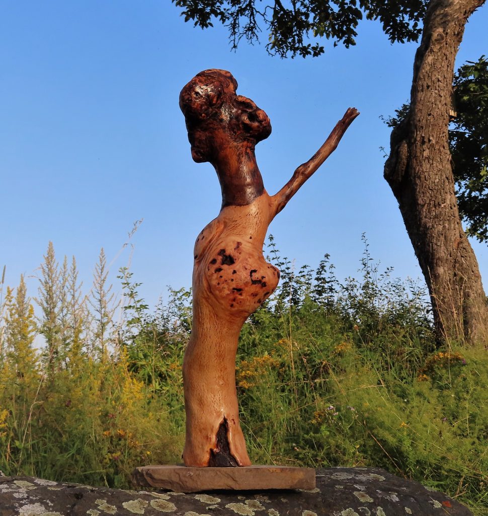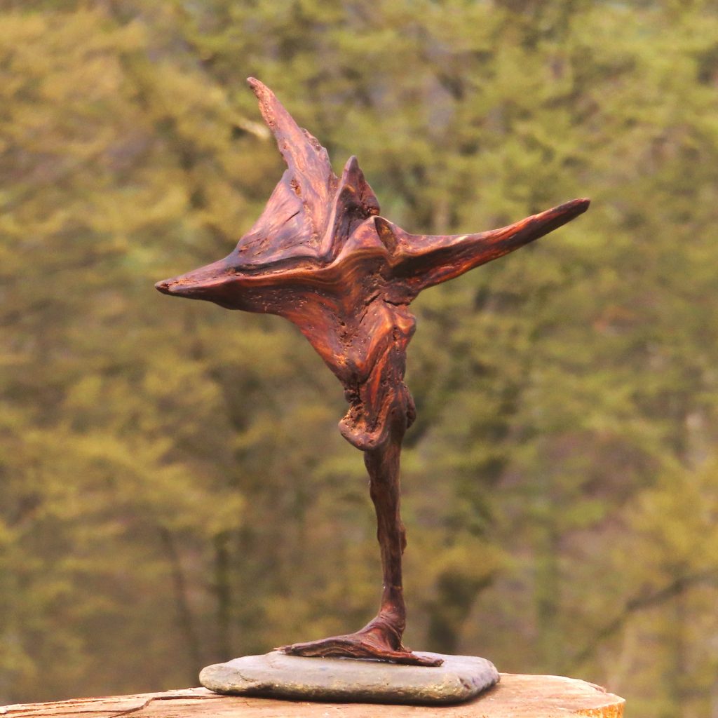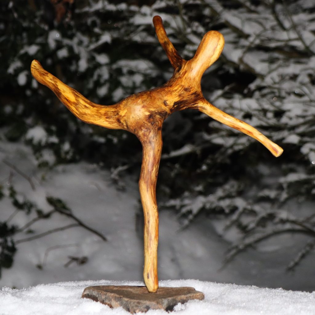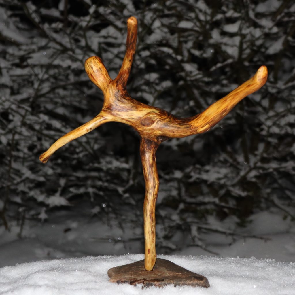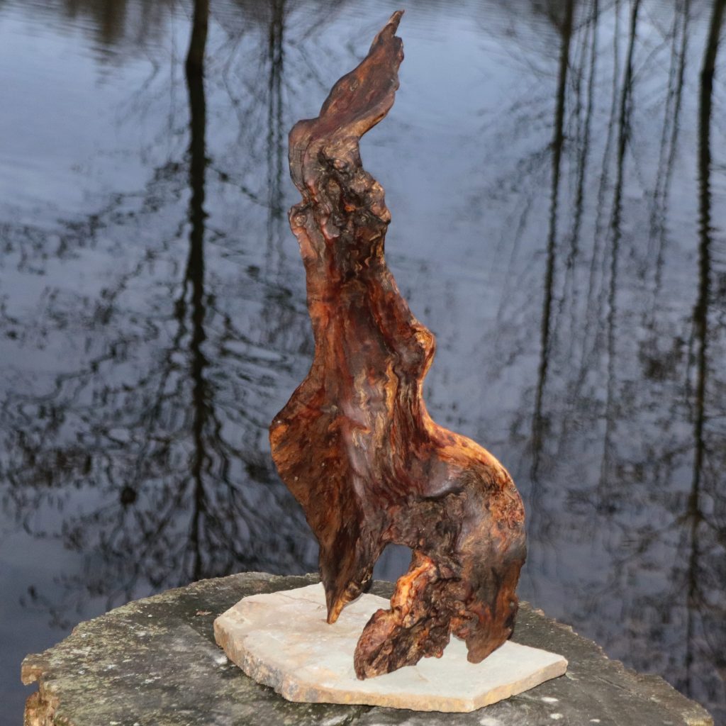 Naturskulptur „Wandel“, Treibholz auf Quarzsockel, Höhe 30 cm.