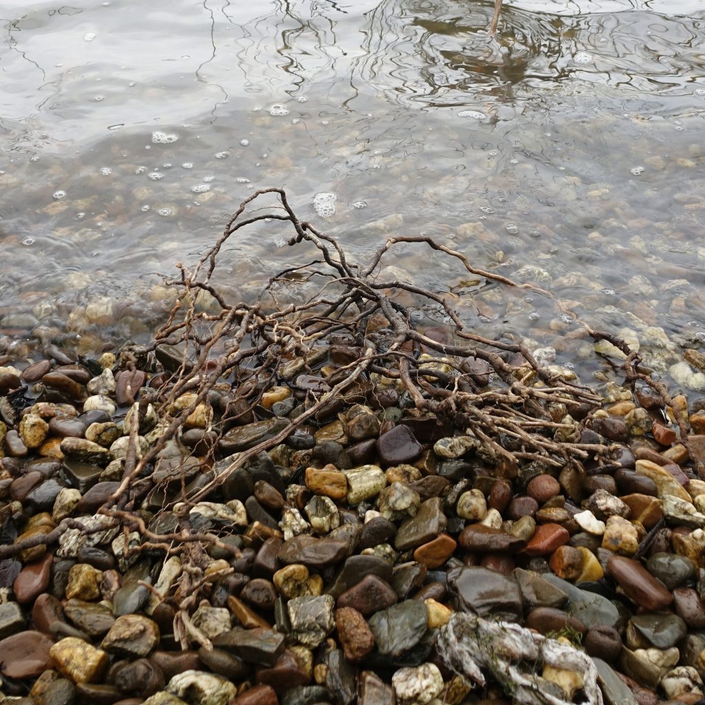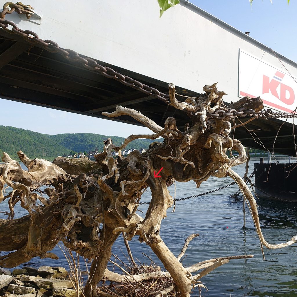 Das vierte Foto schließlich zeigt den ursprünglichen Zustand, ein angeschwemmtes Wurzelgewirr am Rheinufer bei Leutesdorf.