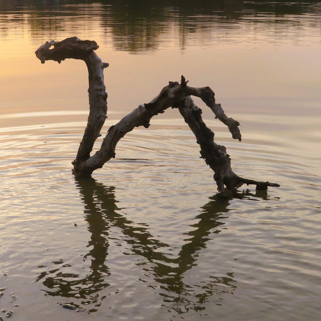 Das bizarr geformte Holzstück, welches ich bei Urmitz am Rheinufer aufgelesen habe, mag man wahlweise als abstrakte Kreation der Natur empfinden oder doch etwas Gegenständliches darin sehen. Jedenfalls fasziniert mich, wie sich die optische Wirkung je nach Lichteinfall und Blickwinkel verändert.