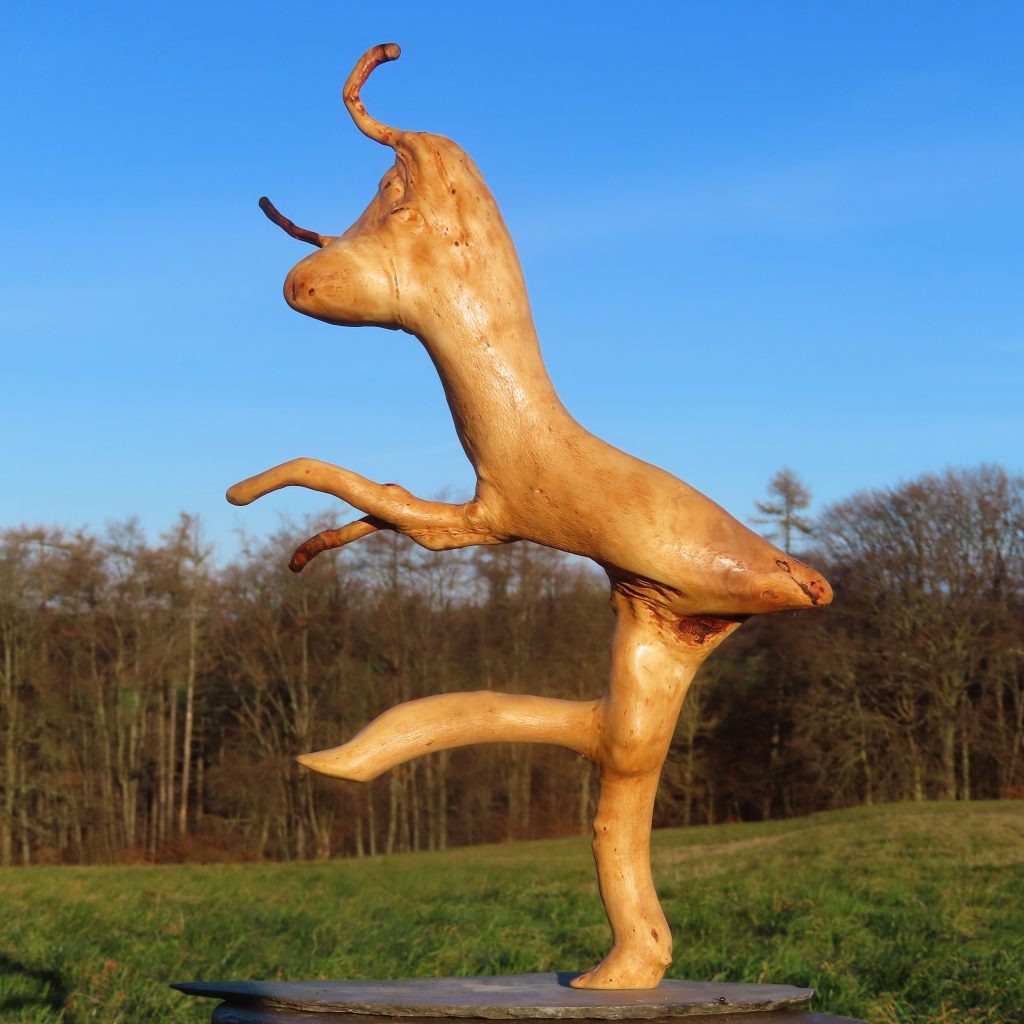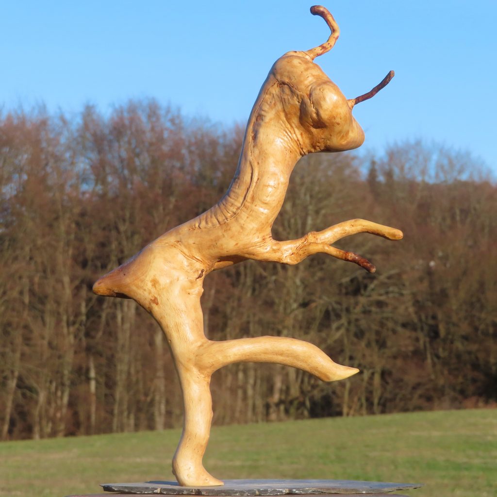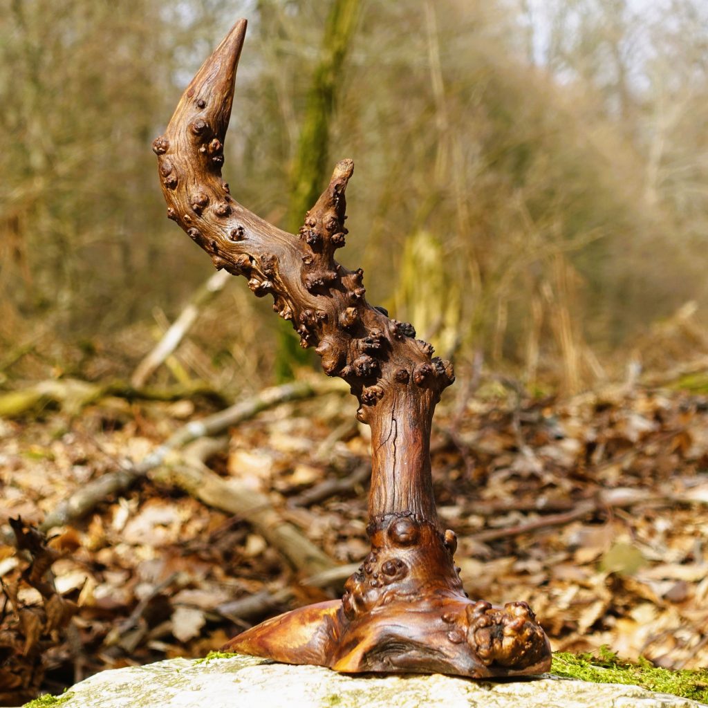 Naturskulptur „Gehörnstange“, Apfelholz, Höhe 27 cm.